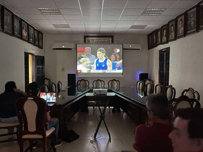EL ROSARIO._ En apoyo al boxeador sinaloense Marco Verde, quien disputaba la medalla de oro en los Juego Olímpicos París 2024, se proyectó la pelea en la sala de Cabildo de Rosario.