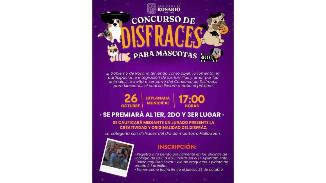 EL ROSARIO._ Con el objetivo fomentar la participación e integración familiar y el amor por los animales, el Gobierno de Rosario invita al concurso de disfraces de mascotas.