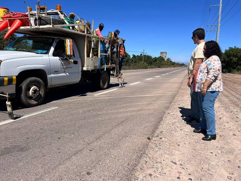 “Se está trabajando con las dos entidades, la estatal por parte de Obras Públicas, ejecuta Precasin quien trae tres cuadrillas con bacheo y pintarrayas... quieren dejar todo listo para Semana Santa”, dijo Graciela Santos Elizalde.