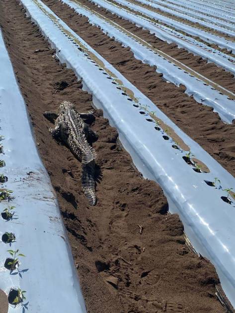 Hallan a cocodrilo entre los surcos de siembra en un rancho agrícola, en Escuinapa