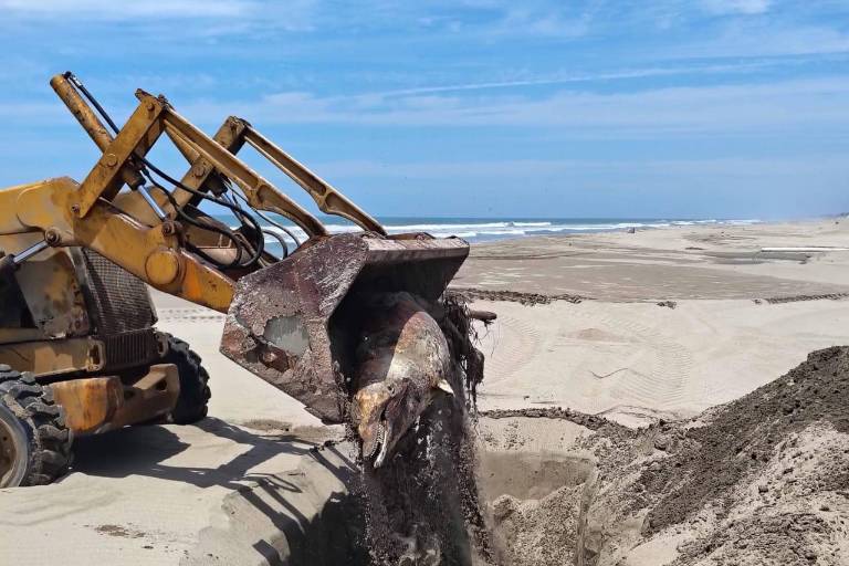 Al lugar acudieron elementos de Protección Civil en coordinación con personal del laboratorio Maricultura, quienes brindaron respaldo con maquinaria y personal auxiliar para facilitar las labores.