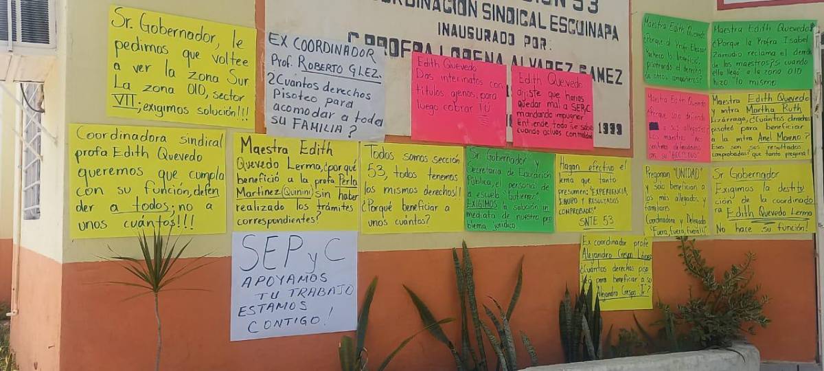 Hubo quienes se tomaron fotos en las pancartas y las subieron a redes sociales, pero de manera directa al SNTE 53 no se ha acercado nadie de los inconformes, por lo que desconoce cuál es la situación que les aqueja.