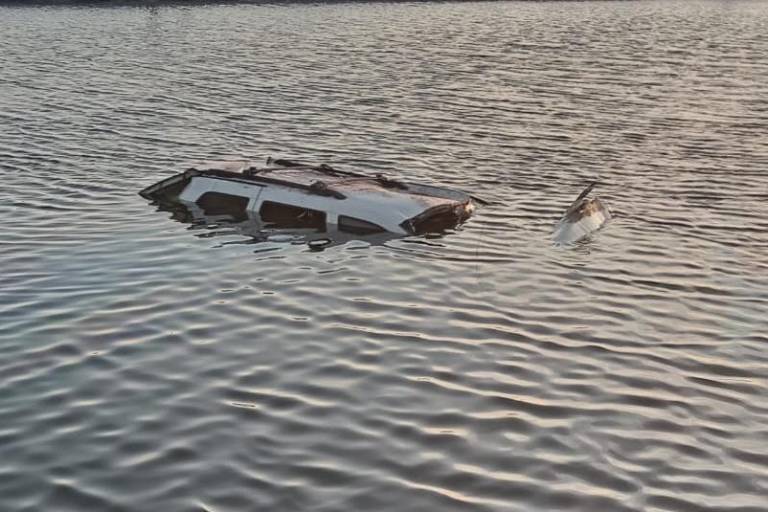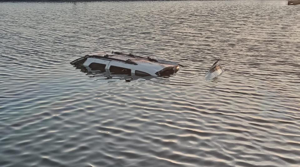 Tras arribar elementos de Protección Civil y Tránsito Municipal se encontraron con la unidad en el estanque sin ocupantes y procedieron a remover la unidad con la ayuda de la grúa de guardia.