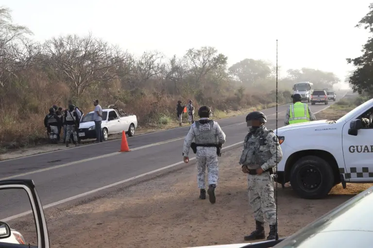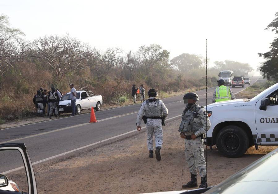 Elementos de la Guardia Nacional implementaron un retén en la Carretera 40 Matamoros-Mazatlán, en el tramo Villa Unión- Concordia, donde revisan a todos los que pasan por ese punto en ambos sentidos.