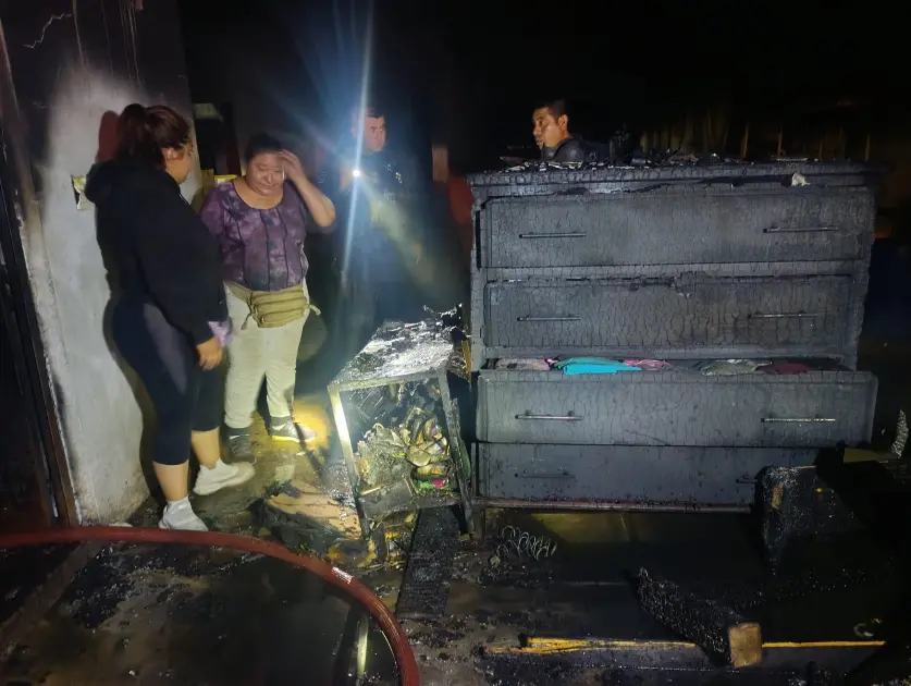 El incendió acabó con la recámara completa, la temperatura afortunadamente no alcanzó para que el fuego se propagara a otras partes de la casa o a viviendas aledañas, pero sí su habitación, que es donde tenía los gastos programados para los dulces que ofrece está temporada decembrina.