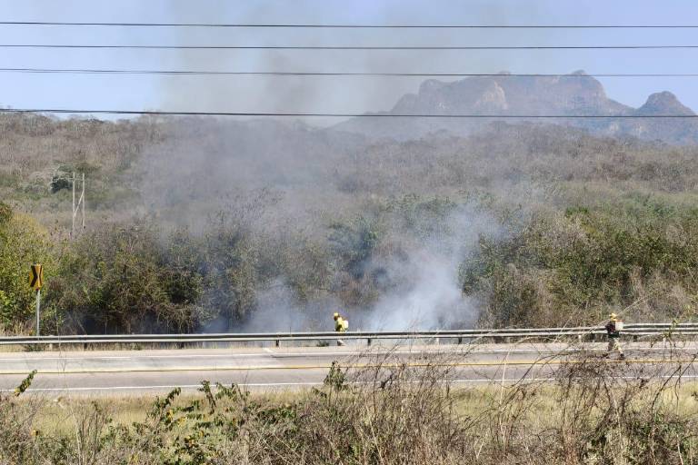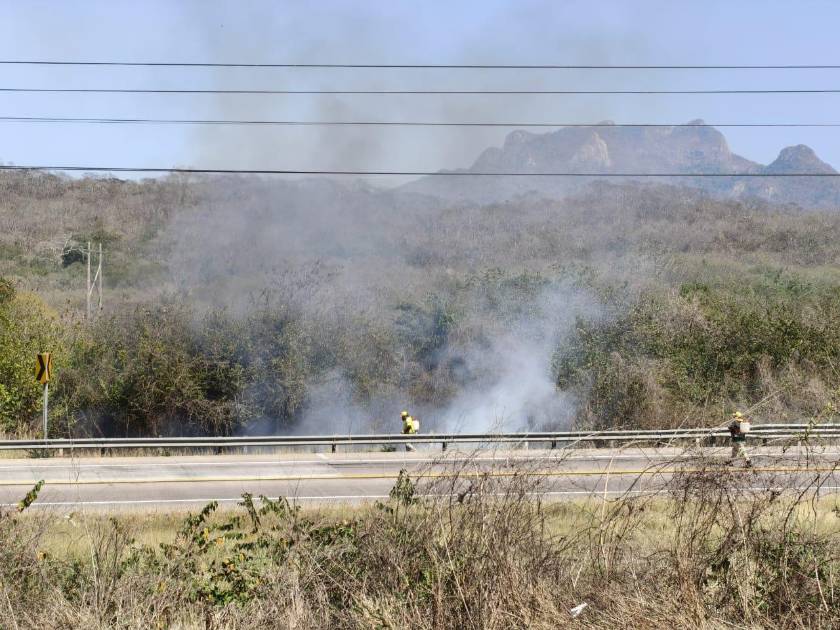 El incendio se registró a la altura del kilómetro 214 de la vía federal, a un par de kilómetros del entronque con la carretera estatal a Chametla.