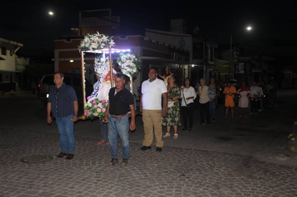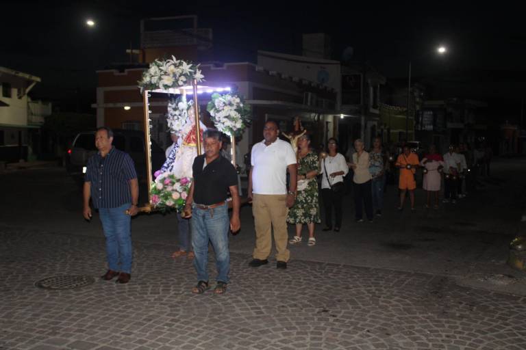 Procesión que entre rezos, cantos y gritos de “¡Viva la Virgen del Rosario!”, culminó con una misa.