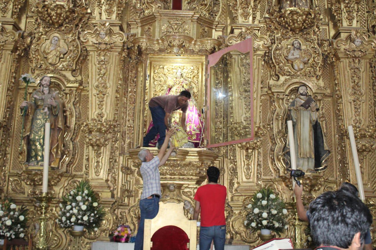 Acto seguido se descendió a la imagen del retablo para cambiar por primera vez el vestido e iniciar esta celebración de fe que une a todo el municipio.