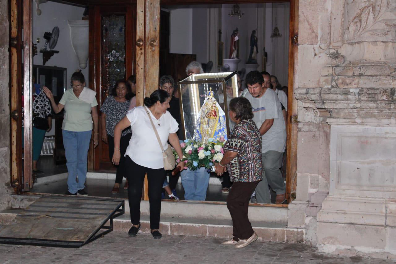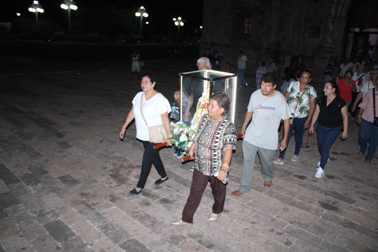 Después de la misa, vecinos y miembros de la Alianza Expiatorio, cargando en andas a la imagen réplica denominada Virgen Peregrina, se realizó el recorrido en las primeras colonias, Presidente, Valle Nuevo e Infonavit Lola Beltrán y Rosarito.