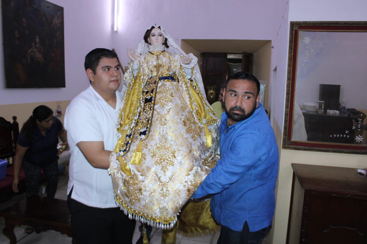 EL ROSARIO._ Con el primer cambio de vestido y la salida del santuario de la Virgen Peregrina se dio por iniciado el novenario solemne en honor a la fiesta patronal de Nuestra Señora del Rosario.