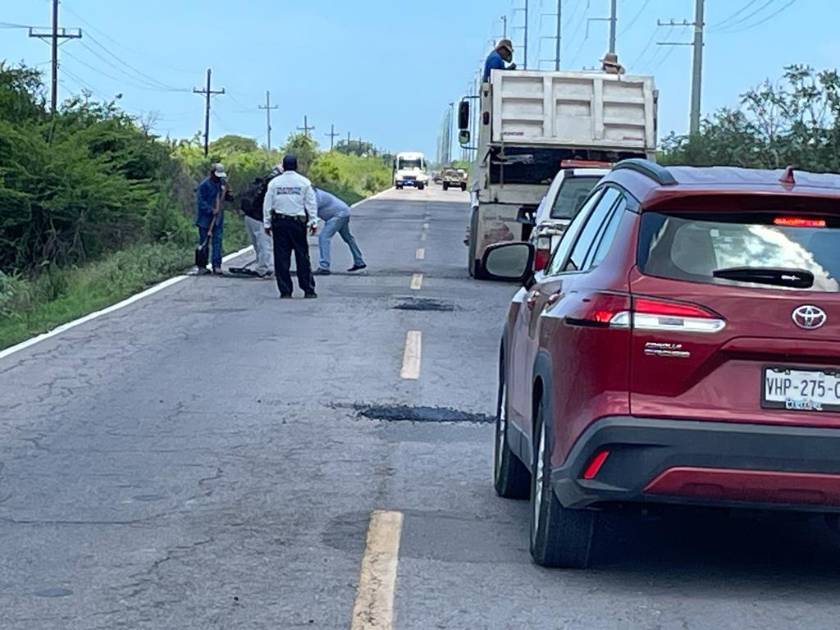 Inician trabajos de bacheo en la carretera Escuinapa-Teacapán
