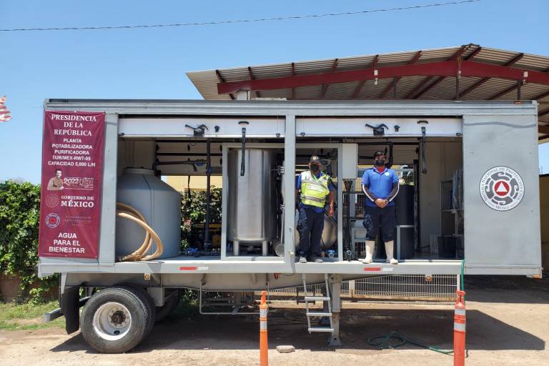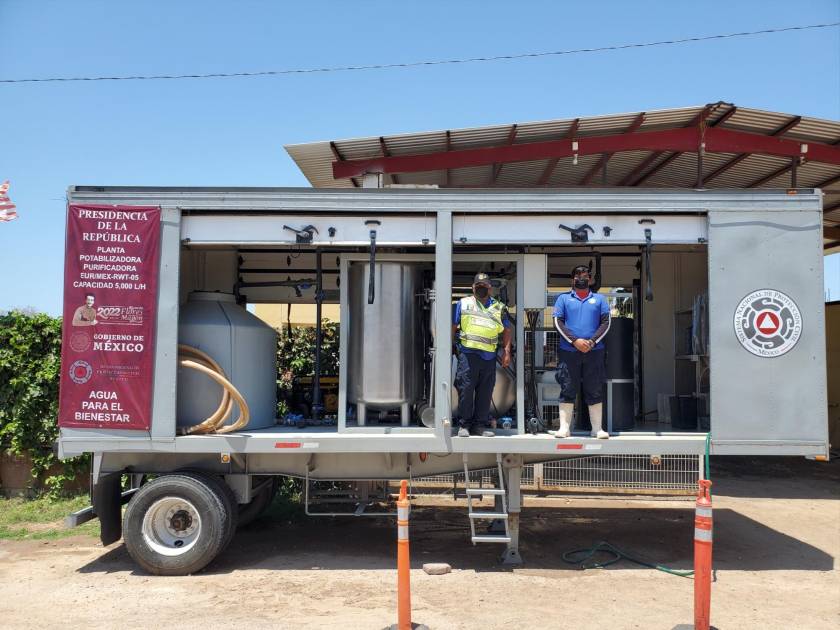 Este programa de plantas purificadoras móviles es impulsado por Gobierno del Estado para paliar la sequía y estiaje dotando de agua limpia y para consumo humano a los habitantes de comunidades donde se requiere el líquido.