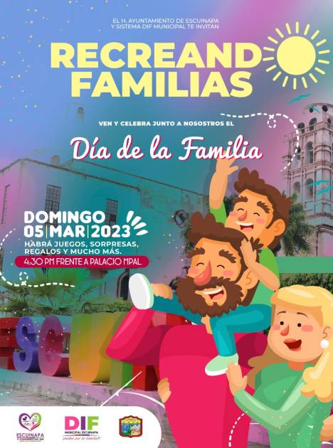 ESCUINAPA._ Con “Recreando Familias”, el Gobierno Municipal a través del Sistema DIF Escuinapa, invita a toda la ciudadanía a celebrar este domingo el Día de la Familia, actividad en la que se pretende reunir a la población con divertidas dinámicas que involucren a chicos y grandes.