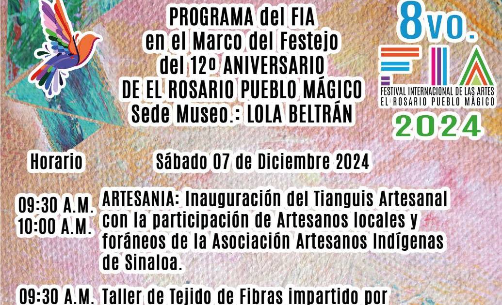 EL ROSARIO._ En el marco del 12 Aniversario de que El Rosario fue designado como Pueblo Mágico, el comité a cargo de este distintivo, en conjunto con el Ayuntamiento, invitan a la octava edición del Festival Internacional de las Artes 2024.