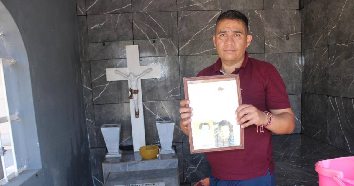 José Armando, con amor y gratitud, acude a limpiar la tumba de sus padres al panteón en Rosario