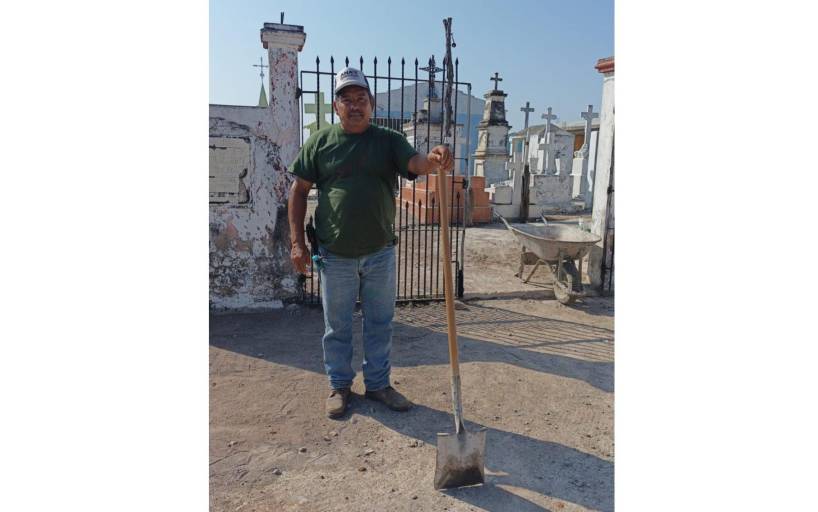 “Aquí en el panteón hoy cumplo dos años, tengo dos años trabajando para el pueblo. Las labores las hacemos todo el año, yo tengo trabajo, pero vengo por las tardes, diario vengo a hacer cositas”, argumentó.
