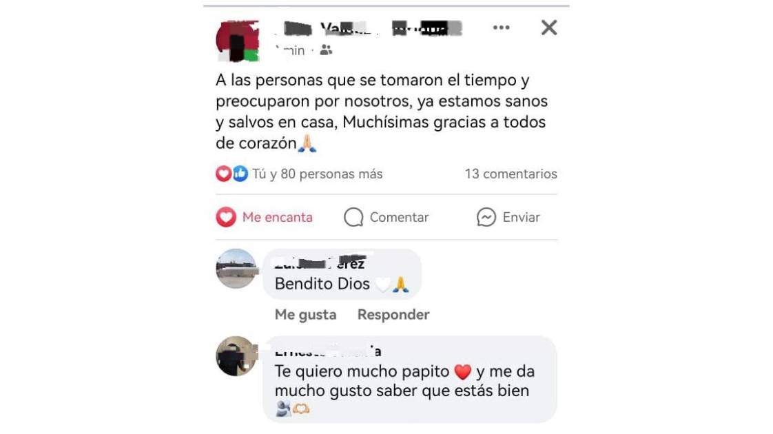 ”Muchas gracias a todos por su apoyo oraciones mi hijo y sus amigos están en casa”, precisó una de las madres.