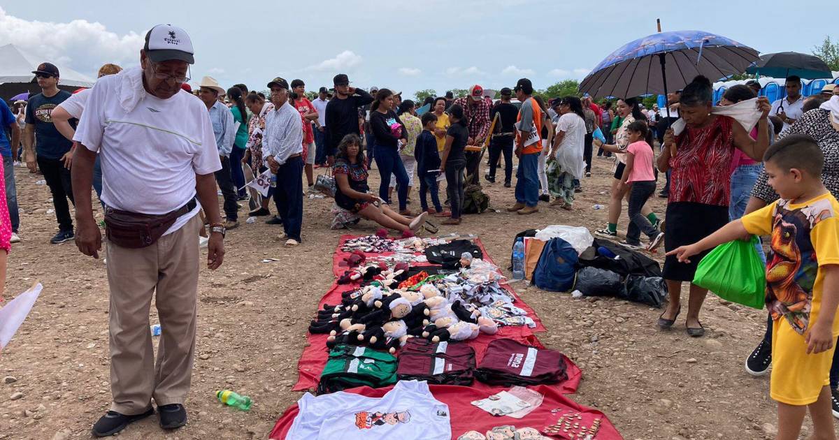 EL ROSARIO._ Tal y como se acostumbra en todas las presentaciones que tiene el Presidente Andrés Manuel López Obrador, la venta de productos de la llamada “pejemanía” se apoderó del evento de la inauguración del Distrito de Riego de la presa Picachos, en El Rosario.