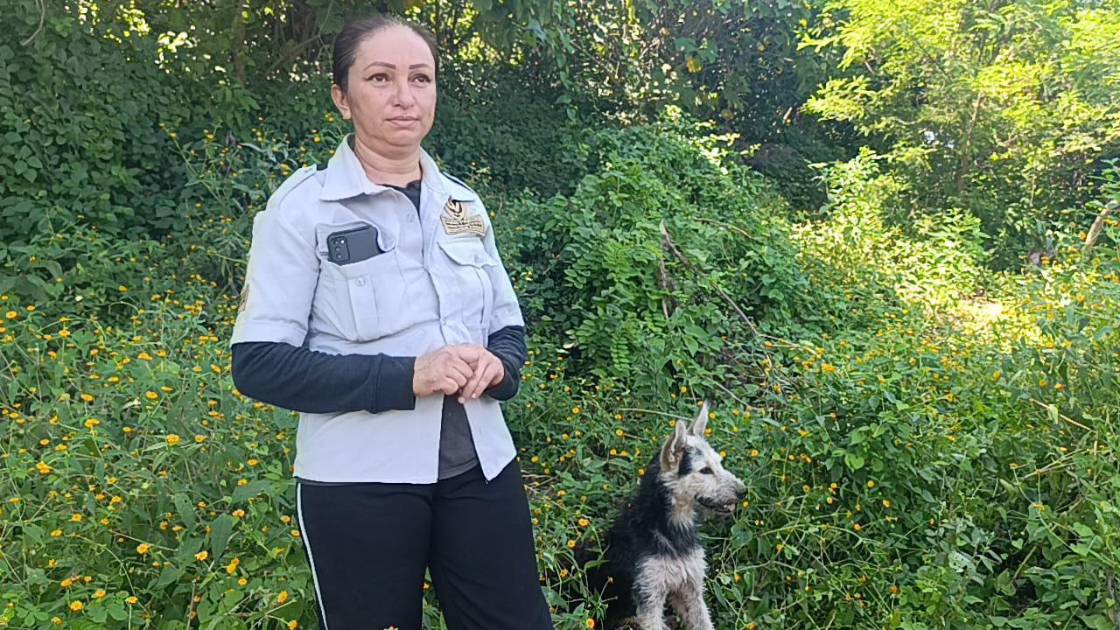 No lo hace sola, desde hace 5 meses ‘Oso’ la acompaña, es un perro que le regalaron y se fue con ella a la presa, pero a diferencia de que ella regresa a casa todos los días, ‘Oso’ se queda, pendiente y en apoyo al guardia que trabaja de noche.