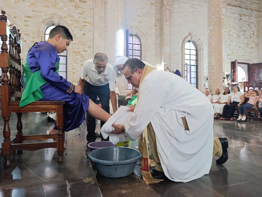 Acto seguido, hizo el lavatorio de pies a adolescentes que representaron a los 12 apóstoles y con lo que Jesús enseñó la vocación de humildad y servicio que se debe tener.
