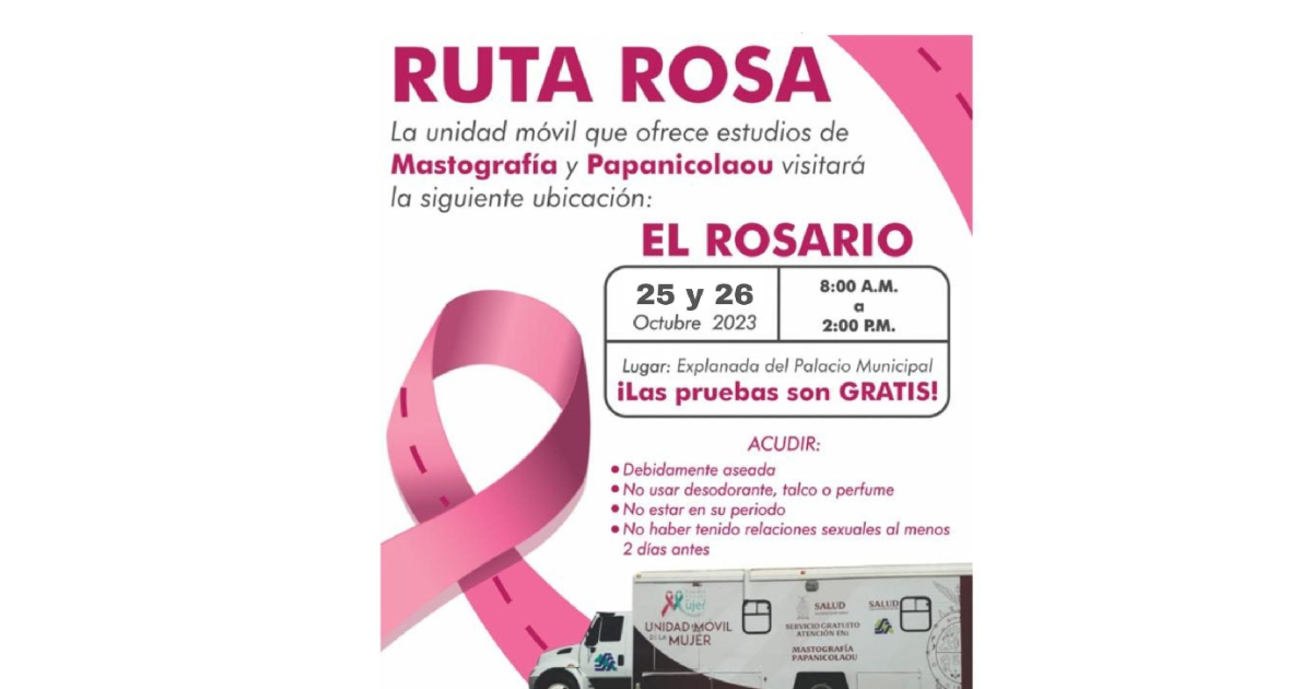 EL ROSARIO._ DIF municipal anunció la llegada de la Ruta Rosa al municipio para que las mujeres puedan acceder a estudios gratuitos de mastografías y papanicolaou.