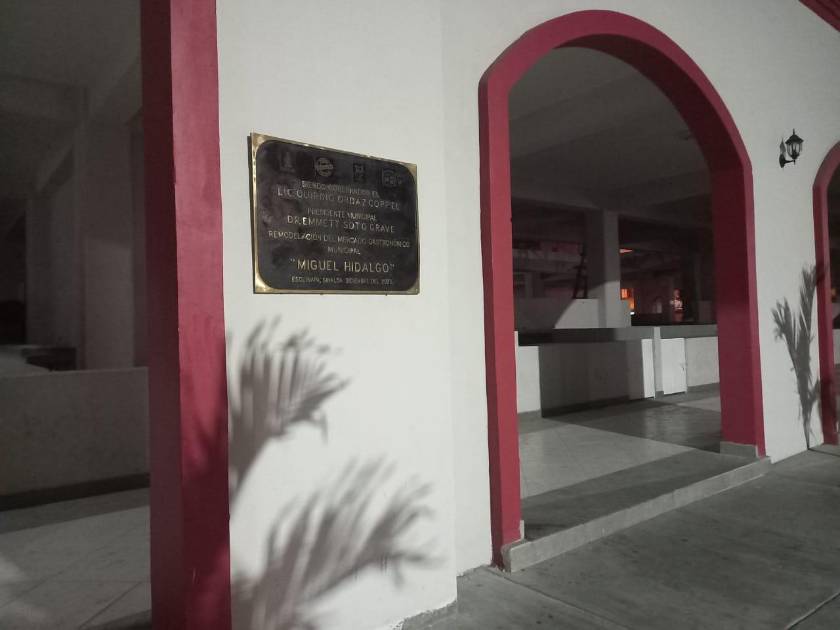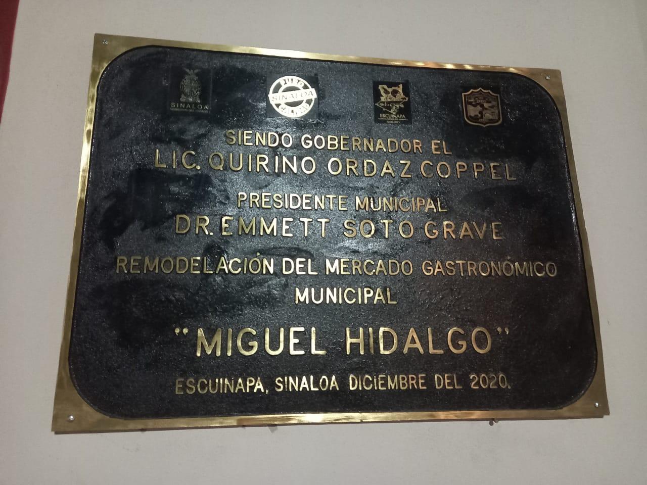 En el mercado no hay movimiento de trabajadores haciendo lo que falta de las conexiones de gas, pero sí ha sido colocada una placa afuera del edificio que “detalla” que la obra fue terminada en diciembre de 2020, en las que se leen los nombres del Gobernador Quirino Ordaz Coppel y el Alcalde Emmett Soto Grave.