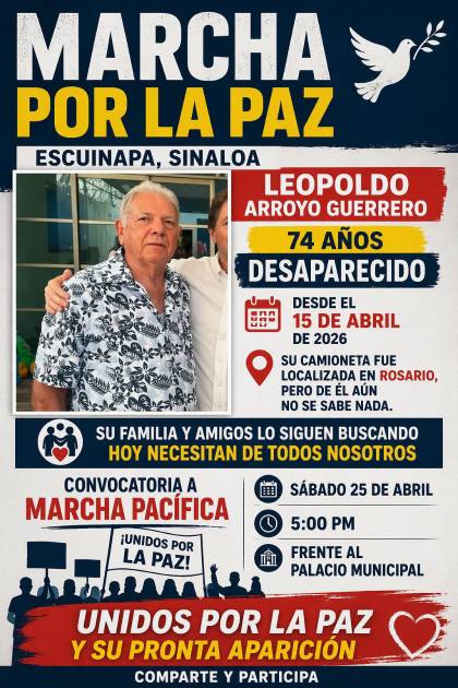 Un día más sin noticias del constructor Leopoldo Arroyo Guerrero ha transcurrido y la marcha por la paz continúa vigente en Escuinapa.