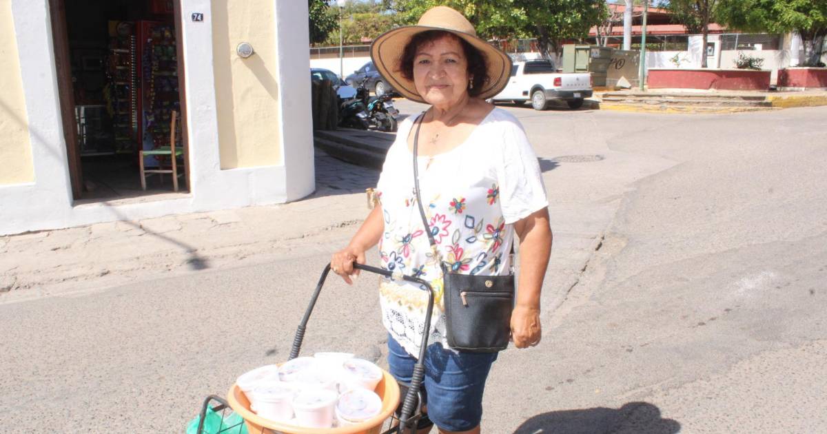 EL ROSARIO._ Para María del Carmen Lizárraga el enviudar y convertirse en padre y madre de cuatro hijos pequeños fue el impulso que la llevó a convertirse en comerciante ambulante por las calles de El Rosario.