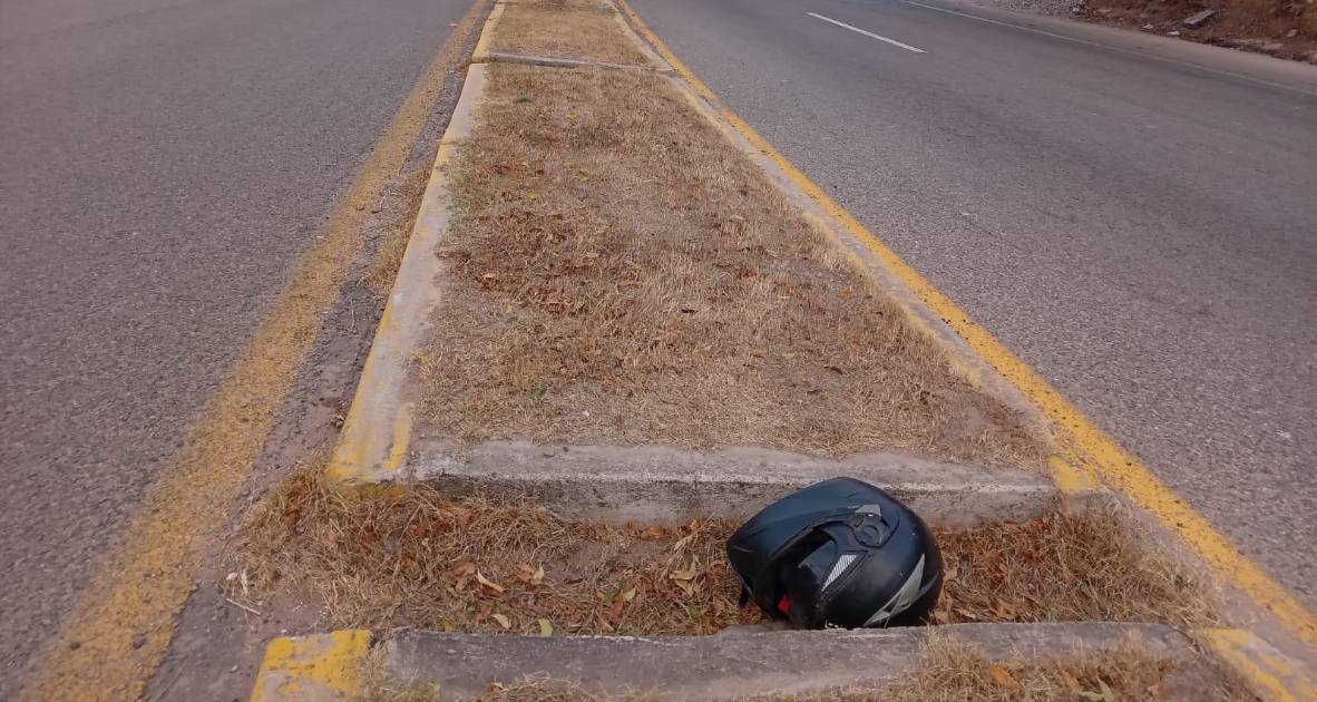 Se presume que tal era la velocidad de la camioneta que el casco quedó en el camellón y la motocicleta en el canal pluvial.