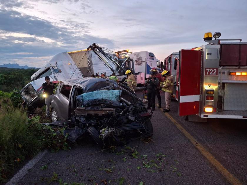 Sobre las unidades involucradas se precisó que se trató de un vehículo marca Spark, color gris, y un tráiler marca Freightliner blanco.