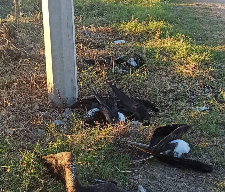 Mueren electrocutadas decenas de aves marinas en Teacapán debido al cableado de la CFE