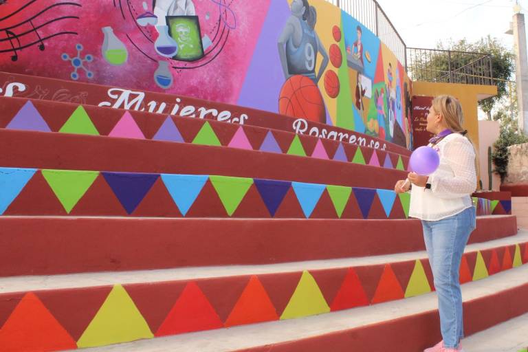 El mural resalta la silueta de la cantante Lola Beltrán, la basquetbolista Brisa Silva, la joven química y divulgadora científica rosarense Ana Laura Pacheco y más profesiones.