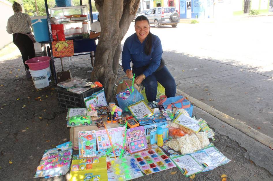 “Con lo que se implementó en las primarias de ya casi no dulces, trato de meter accesorios, juguetitos, y pues fruta natural a veces traigo... Sí afectó un poco pero gracias a Jehová, ahí va otra vez agarrando vuelo, ahí va nada más poco a poco va saliendo”.