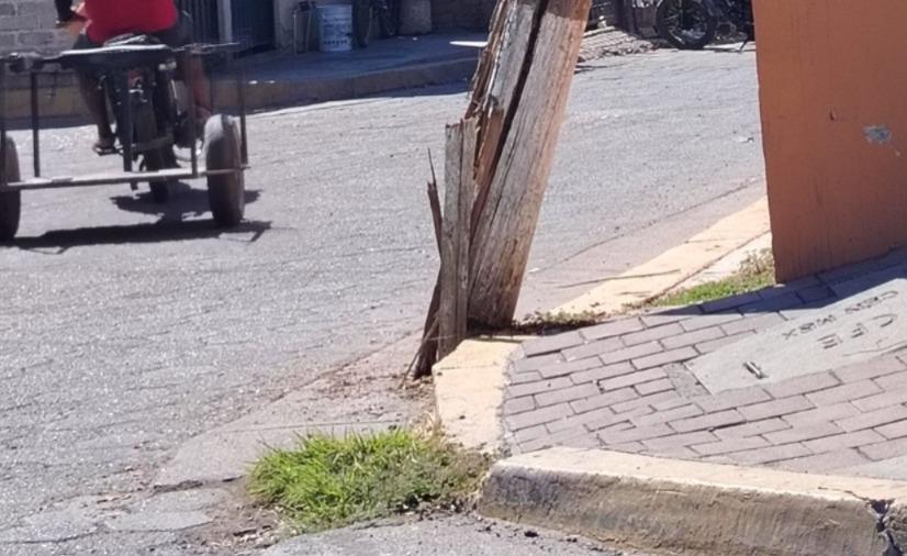 Piden vecinos de Rosario atender poste a punto de caer