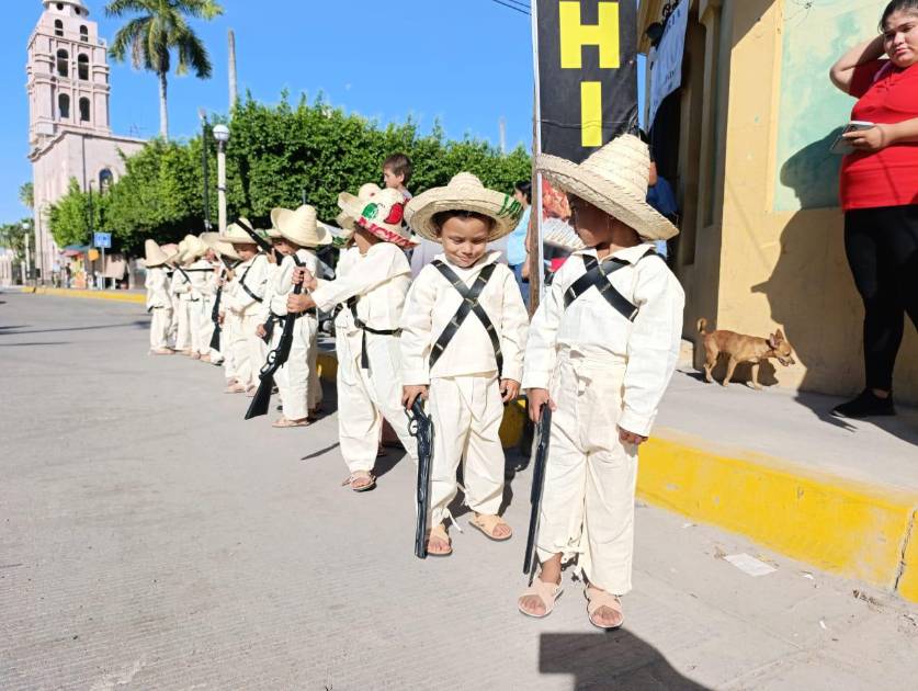 ESCUINAPA._ Referencias a la muñeca “Lele”, adelitas, niños personificando a los héroes de la revolución, soldados y tablas rítmicas es lo que formaron el contingente infantil para celebrar el 114 aniversario de la Revolución Mexicana.