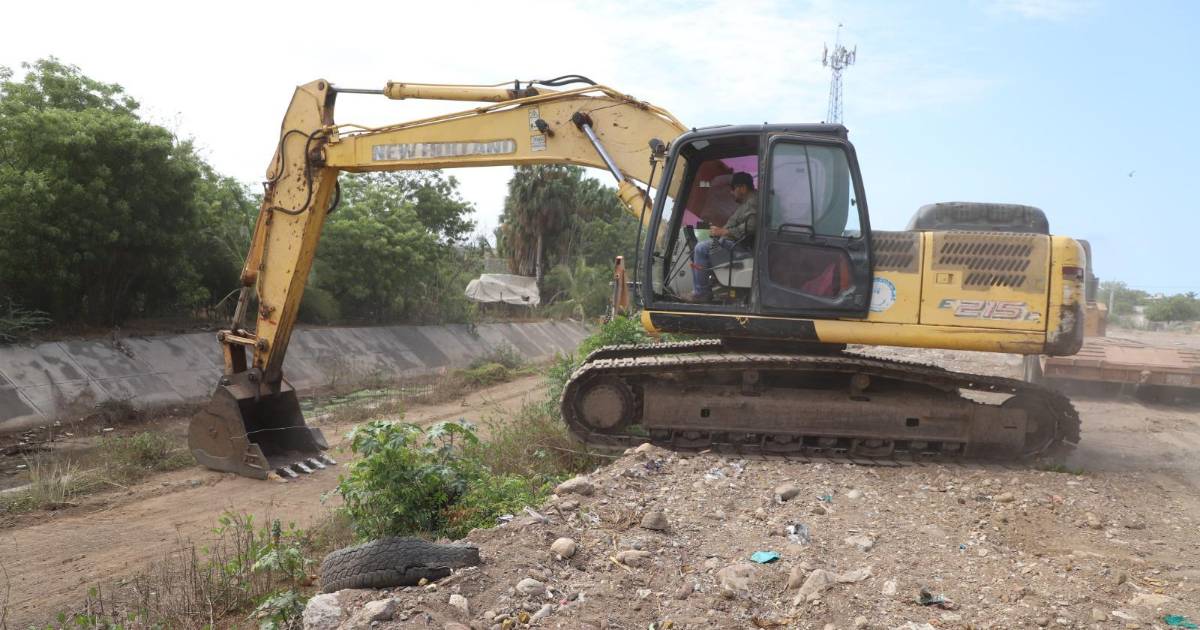 Ponen en marcha trabajos de desazolve en el Dren Miramar de Elota