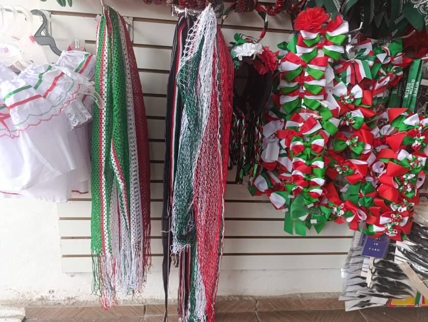 En el mercado municipal, así como en tiendas del centro se ofrece ropa, accesorios diversos como moños, aretes, pulseras y banderas mexicanas, los comerciantes señalaron que esperan tener un repunte entre este sábado y el domingo.