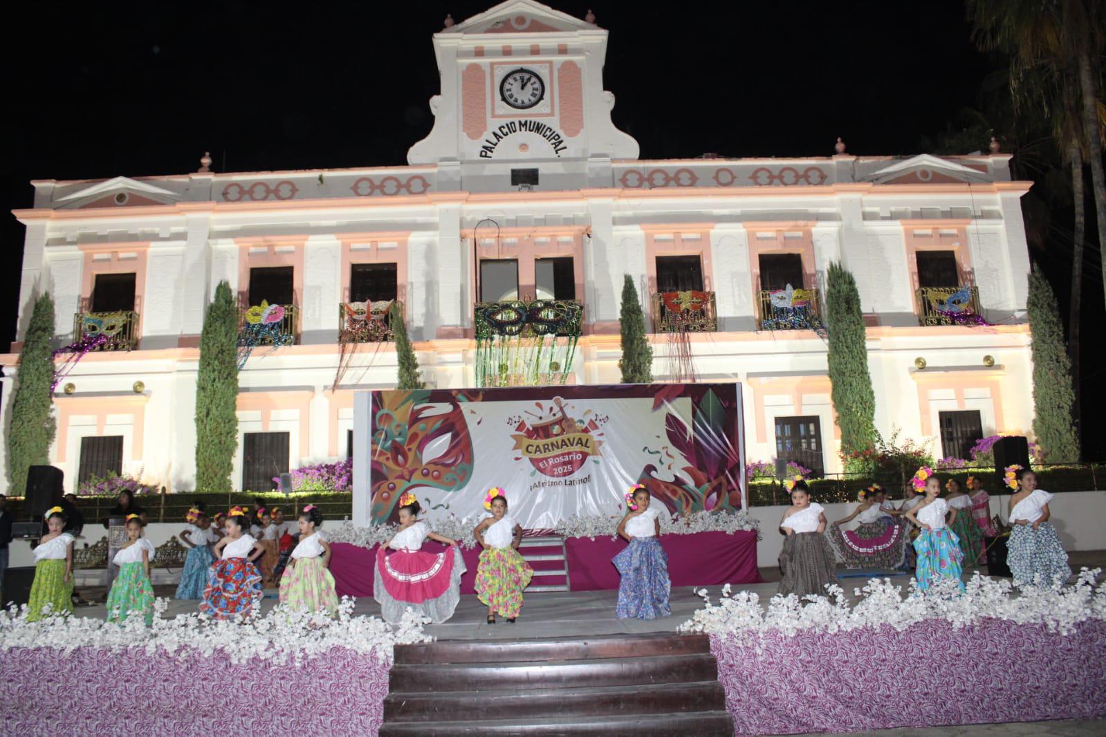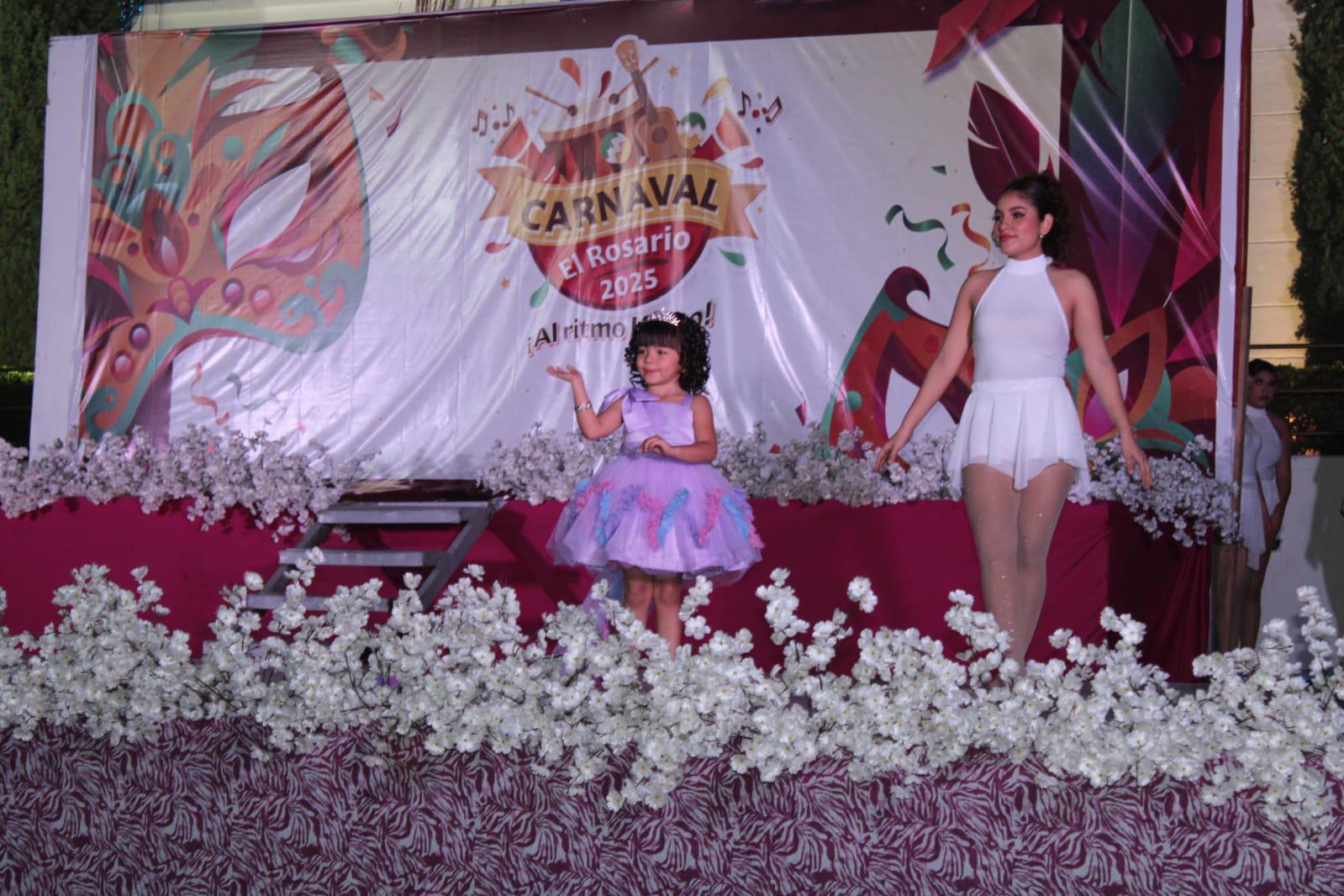 EL ROSARIO._ Enmarcada por el tema “Al ritmo latino”, se llevó a cabo la presentación de Jasive I, Alejandra I y Manuel I, como la realeza del Carnaval Rosario 2025.