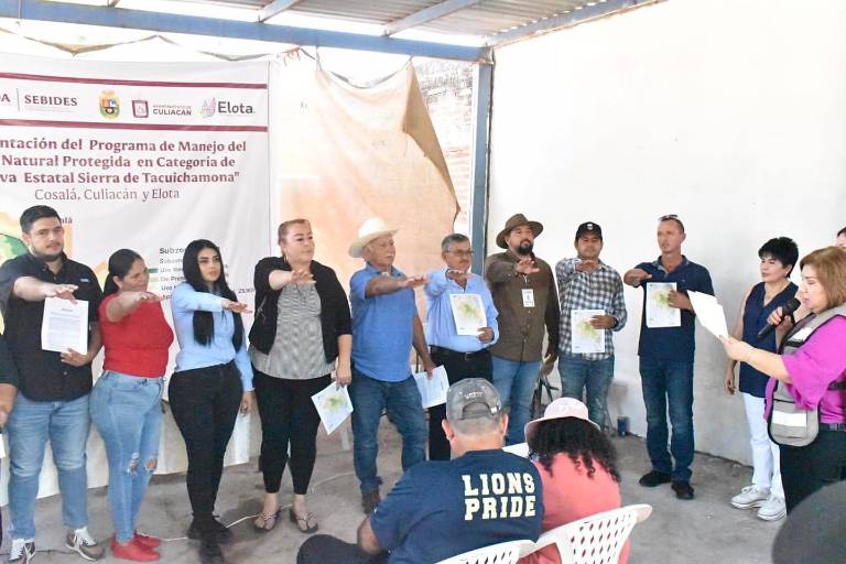 LAS TINAS, Elota._ Ante ejidatarios y habitantes de la sindicatura de Zoquititán, autoridades estatales y municipales presentaron el viernes el Plan de Manejo del Área Natural Protegida en Categoría de Reserva Estatal Sierra de Tacuichamona, que abarca los municipios vecinos de Culiacán, Elota y Cosalá.