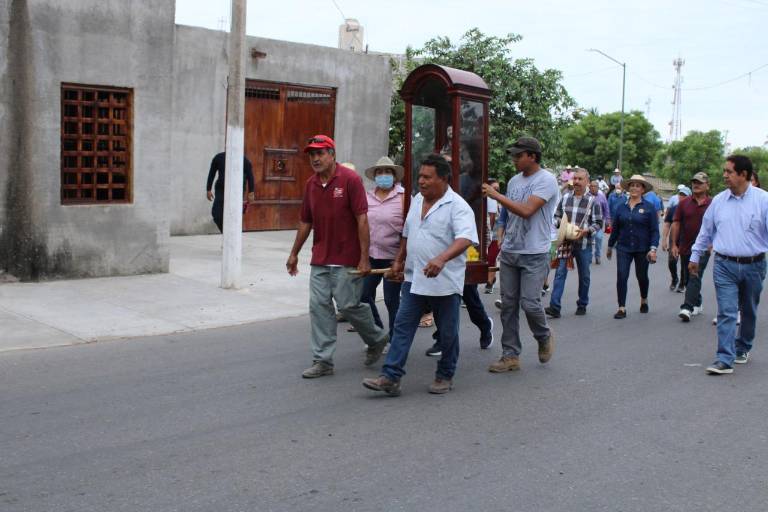 Con fe de que las lluvias llegaran para llenar la presa como ha sido en los últimos años, es como el Santo Patrono del municipio fue sacado de la Parroquia y llevado en procesión al campo.