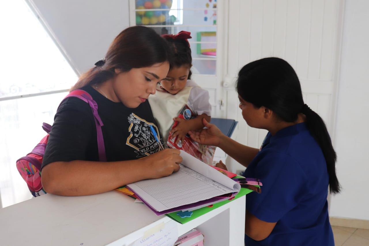 Durante esta primera semana del ciclo escolar 2023-2024, las niñas y niños son acompañados por un adulto, con diferentes horarios, para que poco a poco se adapten a las actividades de su estancia infantil, en la que los menores recibirán atención educativa y recreativa, además de desayuno, comida y colaciones.
