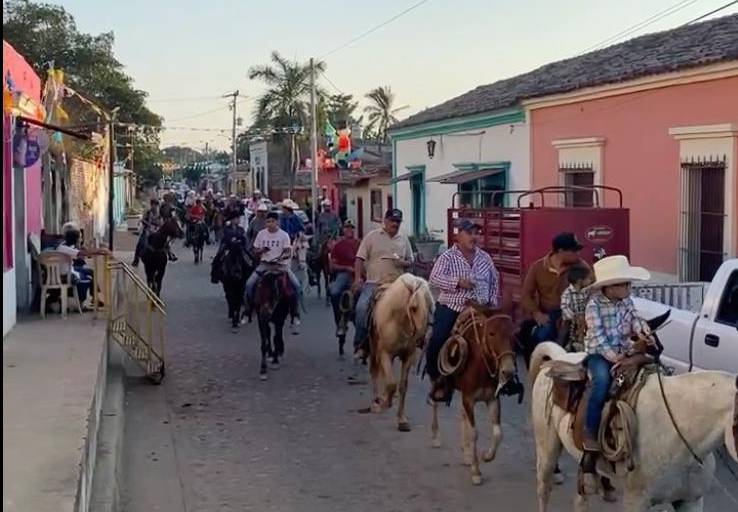 A las 13:00 horas de este sábado dio inicio la cabalgata con jinetes chicos y grandes, que recorrieron la calle principal de la sindicatura rosarense, para después dirigirse por caminos.
