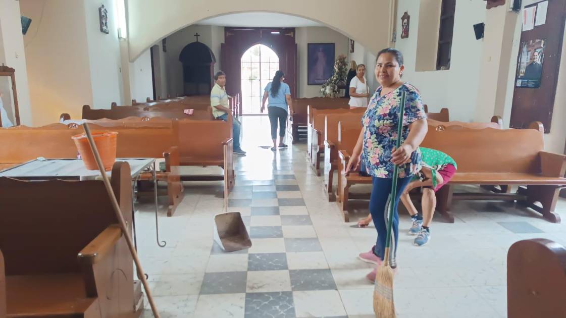 Realizan jornada de limpieza en templo de la Virgen de Loreto en Cacalotán