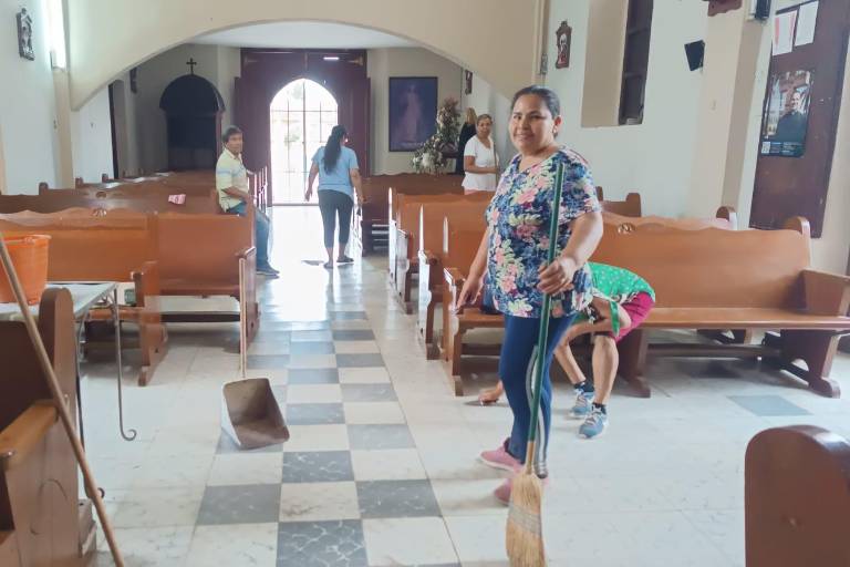 “Realizamos la limpieza de nuestro templo después de las fiestas de Semana Santa por la glicerina de la gente que viene a velar que no se terminen nuestras tradiciones”, expuso Judith Ramos.