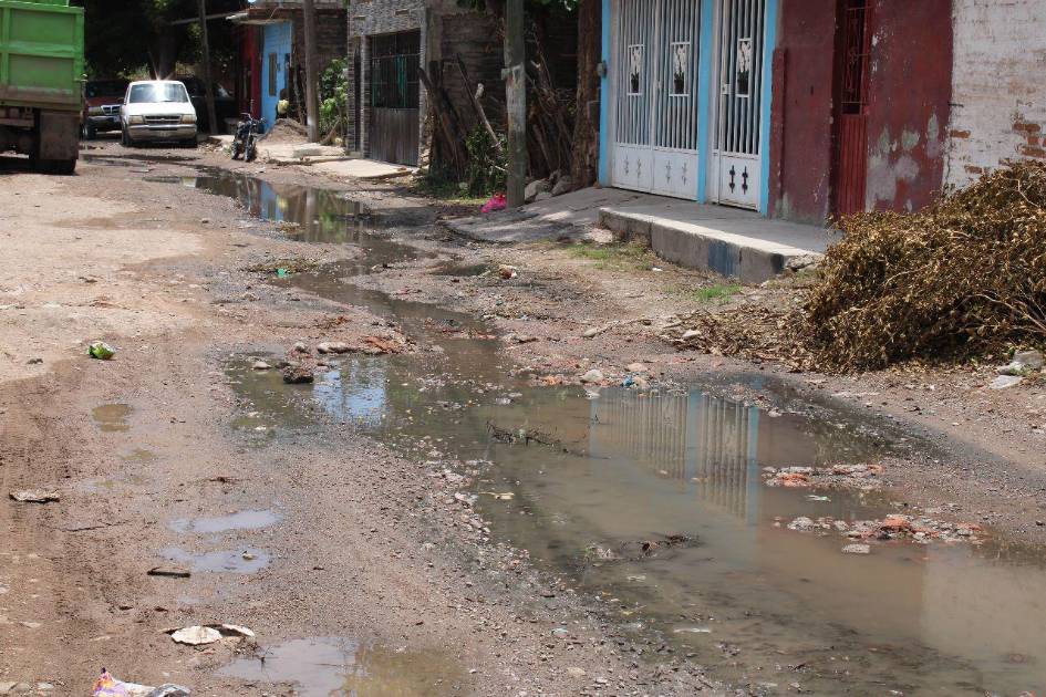 ESCUINAPA._ Las aguas de drenaje rebosan en los patios de vecinos de la Colonia Benito Juárez por una fuga de aguas negras, problema que se ha presentado de manera recurrente, aunque vaya el camión vactor a destapar las alcantarillas.