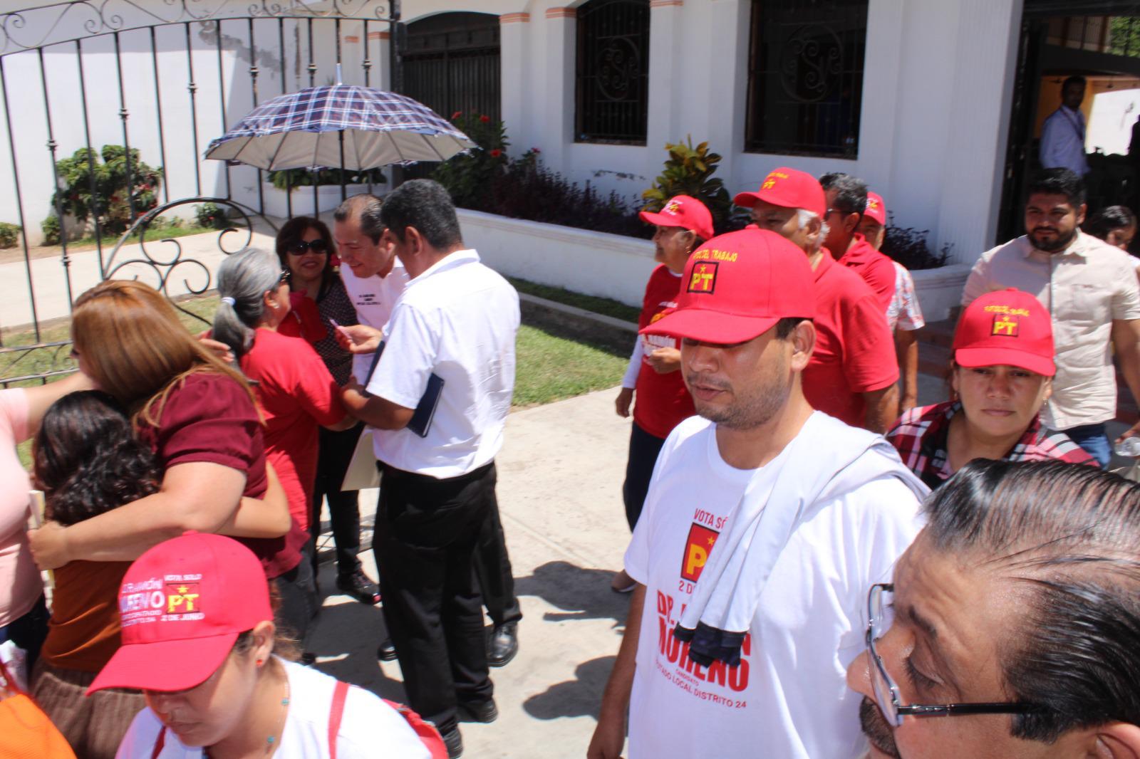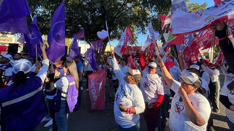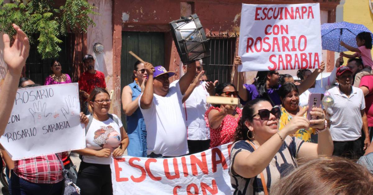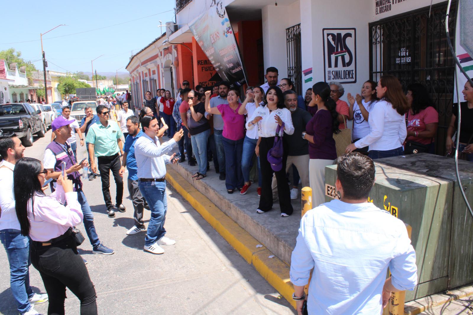 EL ROSARIO._ Entre gritos de “¡Ganamos!” o el nombre de su candidato, las porras se animaron a la espera de sus candidatos, tras el debate de aspirantes a la diputación local por el 24 Distrito Electoral.