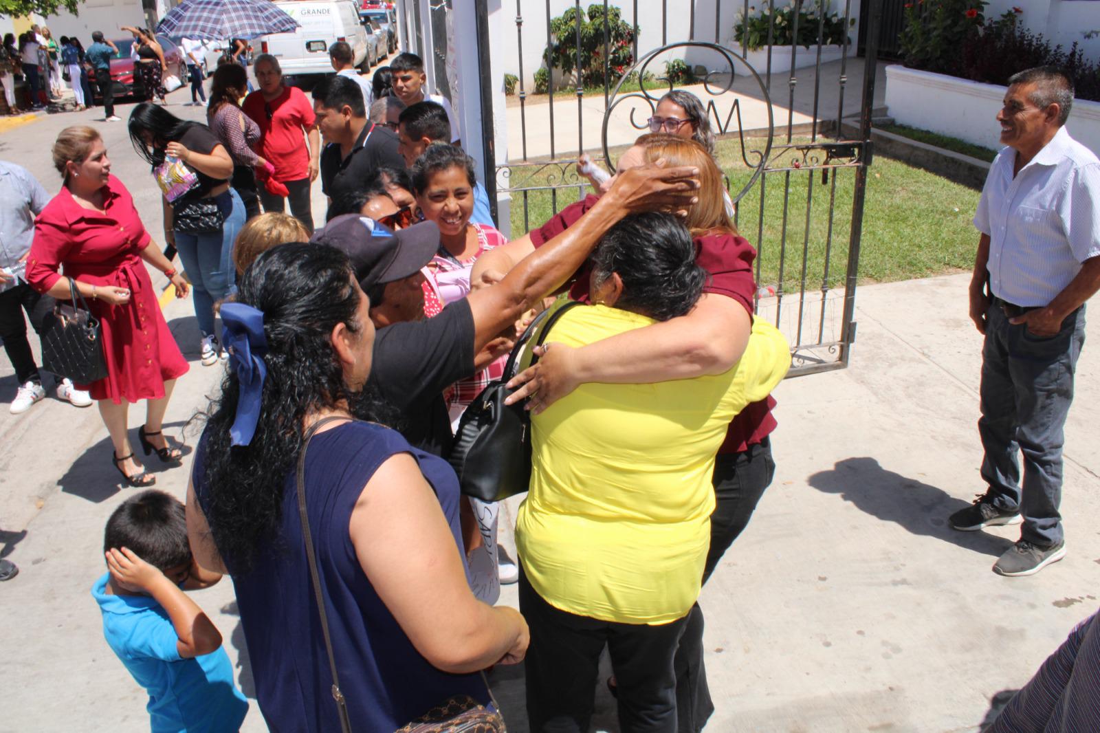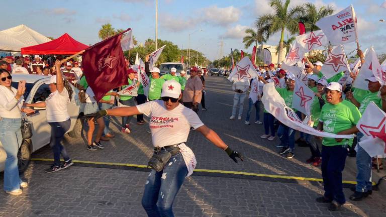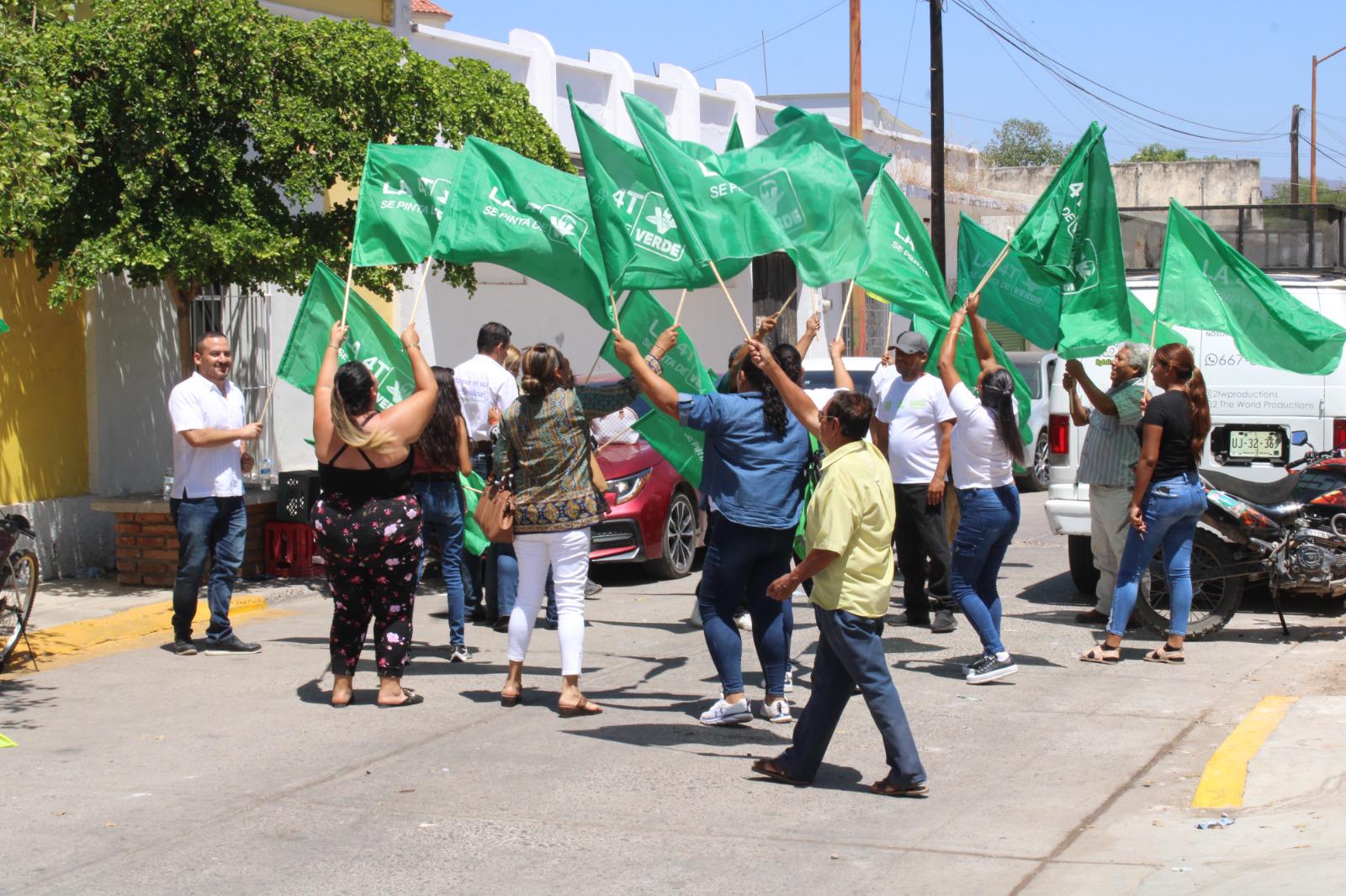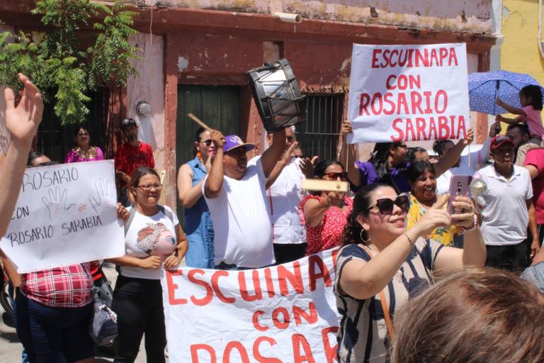 EL ROSARIO._ Entre gritos de “¡Ganamos!” o el nombre de su candidato, las porras se animaron a la espera de sus candidatos, tras el debate de aspirantes a la diputación local por el 24 Distrito Electoral.