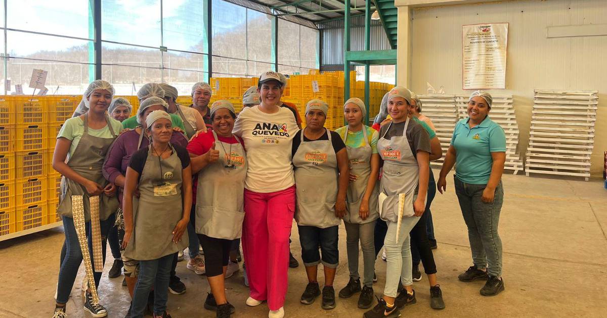 EL ROSARIO._ La candidata Ana Quevedo visitó el empaque “Rosa Elena”, donde los trabajadores se sumaron a la petición de la reapertura de las guarderías para poder tener un lugar seguro para dejar a sus hijos, así como también le solicitaron apoyos para emprender negocios de autoempleo cuando finaliza la temporada de mango.