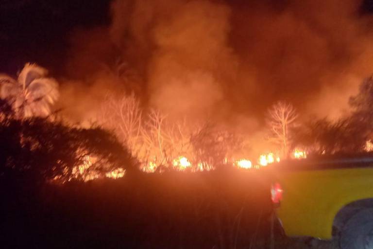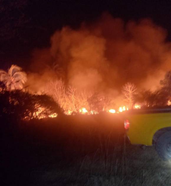 El fuego amenazó durante la noche las enramadas que se tienen ubicadas en la playa Las Cabras, debido a que el viento estaba de norte a sur, por lo que una chispa podría quemar las enramadas de palma construidas para las fiestas del mes de mayo.