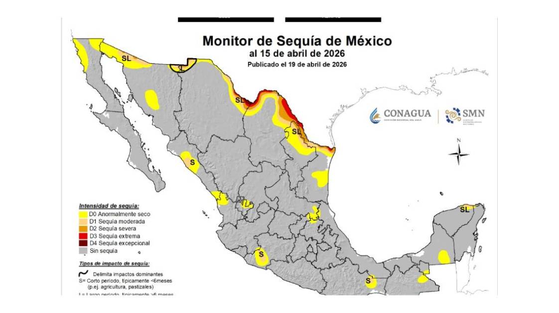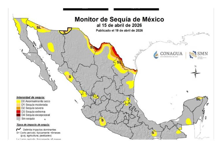 De acuerdo al sistema de monitoreo de la dependencia federal, esto tras siete meses de no presentar índices de la sequía.